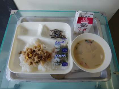 給食は、白みそで味をつけた関西風ぞう煮です。