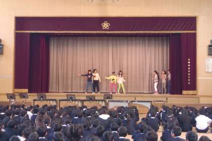 本日、12日から延期になっていた児童集会が行われました。今日のクラブ見学会に先立って、クラブの紹介が行われました。一部ですが「ダンスクラブ」と「器楽クラブ」が日頃のクラブ活動の成果を披露してくれました。どちらのクラブもなかなか完成度が高く、子どもたちは憧れの眼差しで見入っていました。