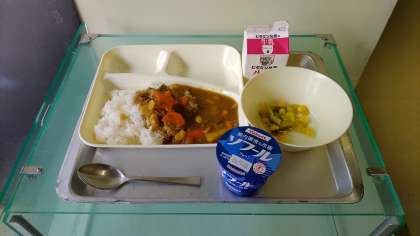 ・牛肉と大豆のカレーライス・レタスとコーンのサラダ・ヨーグルト