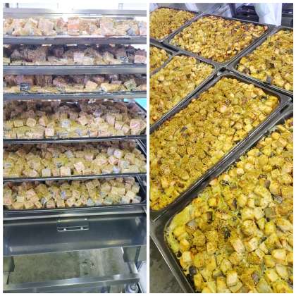 サケは、練りごま・砂糖・うすくちしょうゆ・白みそで下味を付けイリゴマをかけて焼きます。