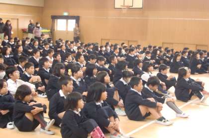 プレゼント交換が終わると、今年度最後となる集会を惜しみつつ、片江小学校全校児童で大合唱をして幕を下ろしました。