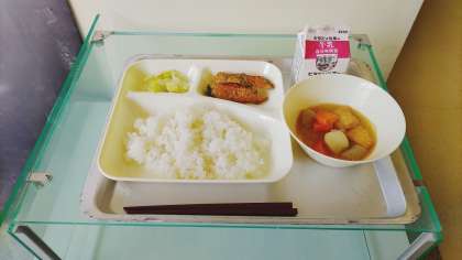 ・ちくわのいそべあげ・厚揚げとさといもの煮物・あっさりきゃべつ
