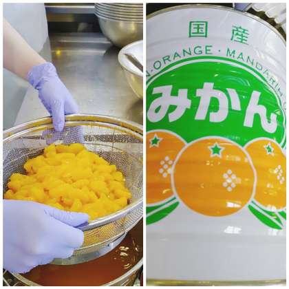 みかん(缶)は、国産のみかん缶を使用しています。1缶には40人分が入っています。