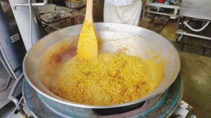 カレースパゲッティは、ベーコン・ニンニクを香りよく炒め豚ひき肉・ニンジン・玉ねぎ・ピーマン・トマト缶で炒めます。炒まれば、塩・カレールウ・こいくちしょうゆで味付けしスパゲッティを加えて炒めてます。