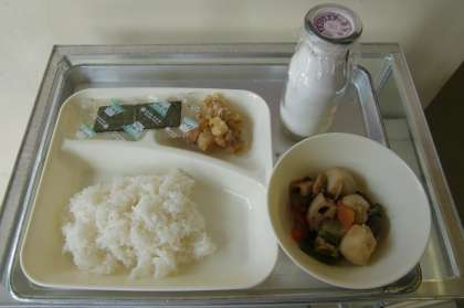 あげどりのねぎだれかけ・豚肉とさといもの煮もの・焼きのり・ご飯・牛乳