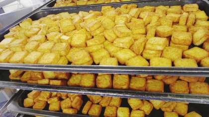 あつあげのしょうが醤油かけは、焼き物機で8分間焼いています。焼いたあつあげに、しょうが汁・砂糖・濃口しょうゆで味付けしています。