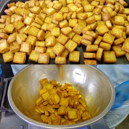あつあげのみそだれかけは、焼き物機で焼いたあつあげを赤みそ・砂糖・濃口しょうゆで味付けしています。
