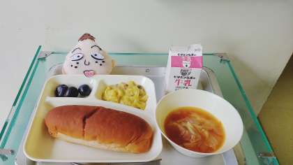豆乳マカロニグラタン(米粉)・トマトスープ・ぶどう(巨峰)