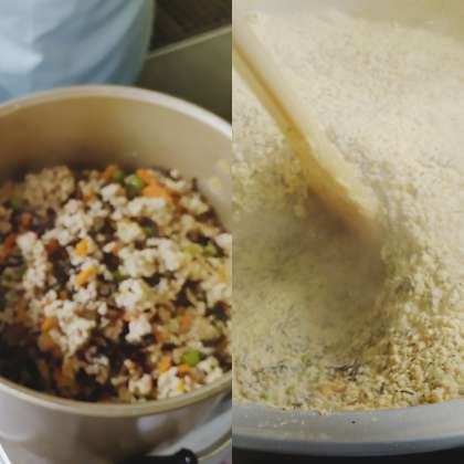 高野どうふのいり煮は、豚ひき肉とだしの旨味を粉末の高野どうふに含ませて仕上げています。