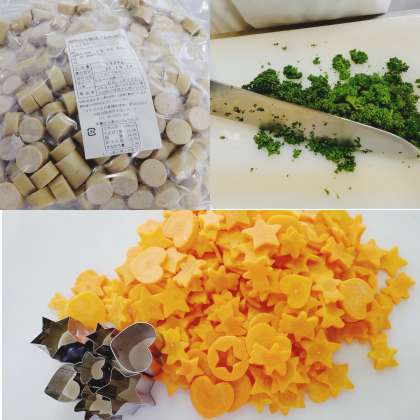 ウインナーとてぼ豆スープは、ウインナーを主材にてぼ豆・玉ねぎ・トマト缶・にんじん・マッシュルームを使用し青みにパセリを加えています。