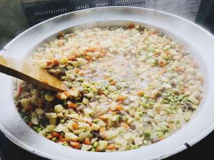 じゃがいもと野菜の煮ものは、じゃがいも・こんにゃく・たけのこなどを使用してボリュームを出しています。