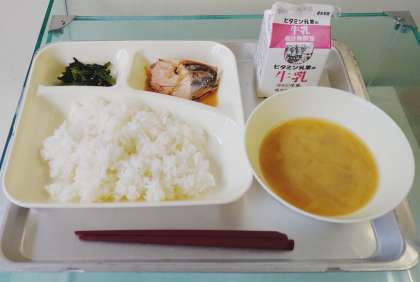 ごはん・なまりぶしのしょうが煮・なめこのみそ汁・ほうれん草のごまあえ