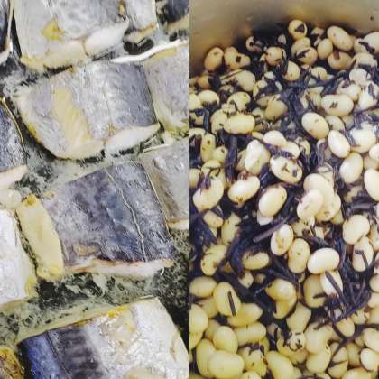 大豆の煮物は、大豆とひじきを砂糖・みりん・塩・濃口しょうゆで味付けしています。