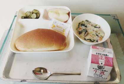 パン・きのこのクリームシチュー・きゅうりのバジル風味サラダ・りんご・マーマレード