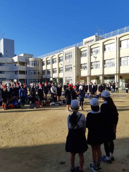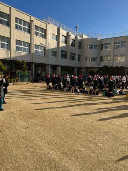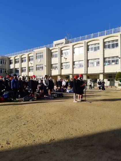 少し肌寒い季節になりましたが、雲一つない青空の下、みんなでそろって出発式を行いました。
