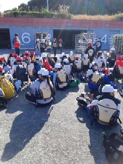 まずは、救命胴衣を身に付けます。