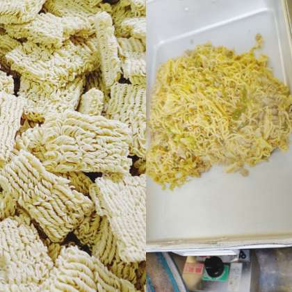 和風焼きそばは、豚肉・にんじん・玉ねぎ・ピーマン・キャベツを炒め、薄口しょうゆ・濃口しょうゆで味付けしています。かつおぶし(袋)が一人一袋付きます。