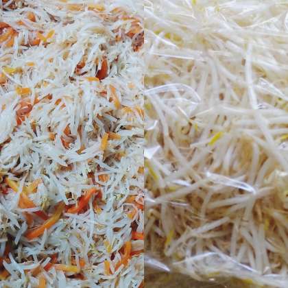 もやしとにんじんの甘酢あえは、茹でたもやし・にんじんを砂糖・塩・米酢・濃口しょうゆで味付けしています。