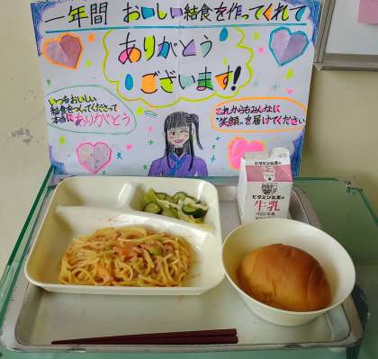 パン・さけのクリームスパゲッティ・キャベツときゅうりのサラダ