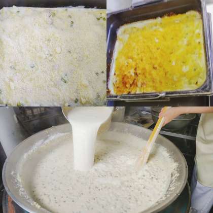 「 マカロニグラタン 」は、 鶏肉を主材にしたグラタンです。クリームを使用することでコクを出しています。