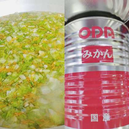 「レタスのスープ」は、4月、5月にのみ使用できるレタスの他に、ウインナー、にんじんを使用し、パセリで彩りよくしています。