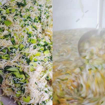 「中華スープ」は、豚骨スープを使用し、豚肉、しいたけで旨みを増しています。