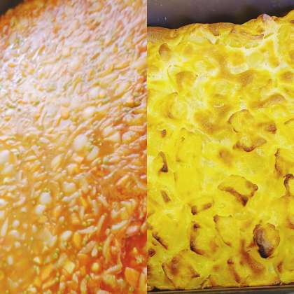ケチャップ煮・さんどまめとコーンのソテー・りんごのクラフティ