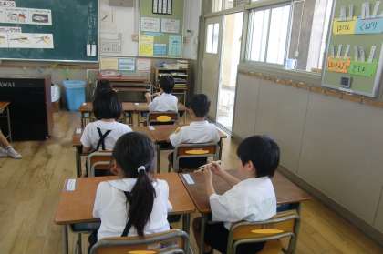本日、東成区の栄養教諭が来校し、1年生に栄養学習が行われました。