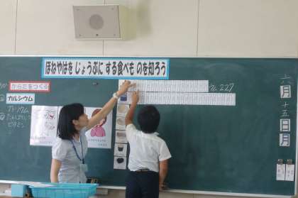 本日、東成区の栄養教諭が来校し、3年生に栄養学習が行われました。