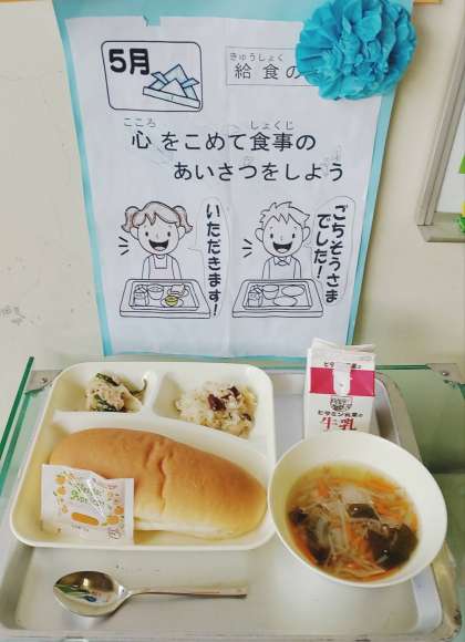 コッペパン・アプリコットジャム・金時豆の中華おこわ・中華スープ・ツナと野菜のオイスターソース炒め