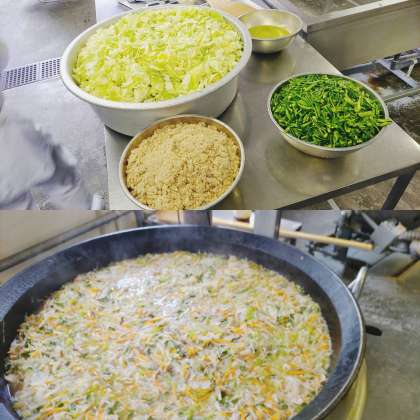 「中華スープ」は、豚肉、たまねぎ、もやし、にんじん、青みにチンゲンサイを使用した、彩りのよいスープです。