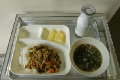 和風カレー丼・もずくとオクラのとろり汁・りんご(缶)・牛乳