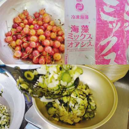ハヤシライス・ミックス海藻サラダ・さくらんぼ