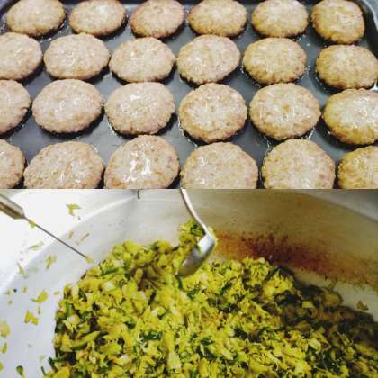黒糖パン・焼きハンバーグ・豆乳スープ・キャベツとピーマンのカレーソテー