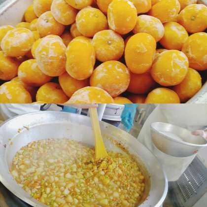 あげぎょうざ・鶏肉ととうがんの中華煮・みかん(冷)