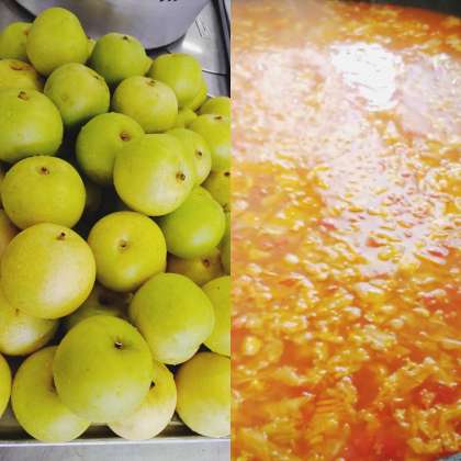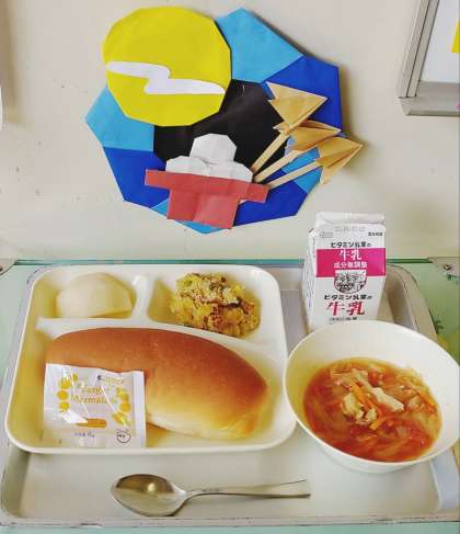 これに小学校は「なし(二十世紀)」が1人1/4切ずつつきます。