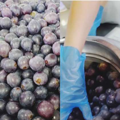 「ぶどう(巨峰)」がは、1人3粒ずつつきます。