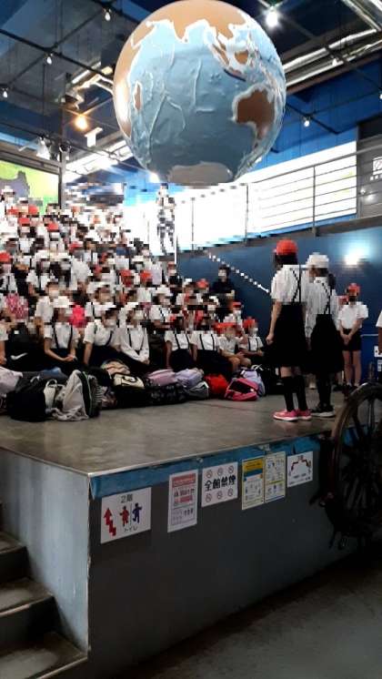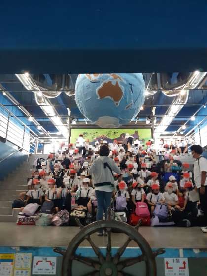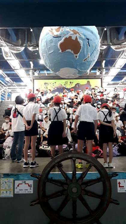 まずは、いつものように海球儀の下で入所式です。