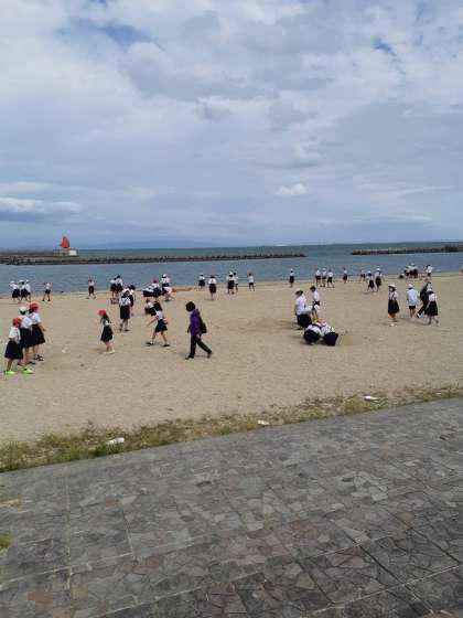 浜辺の散策をしています。
