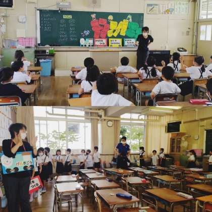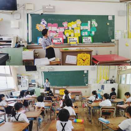 1年生の栄養指導に神路小学校と東小橋小学校の栄養士の先生が来られました。