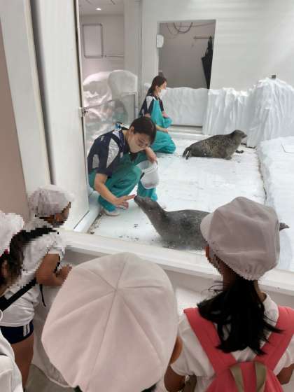 子どもたちは、飼育員の方々のお仕事にも興味津々です。