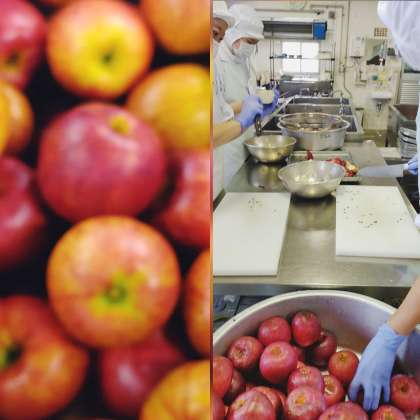 「りんご」が1人1/4切れずつつきます。