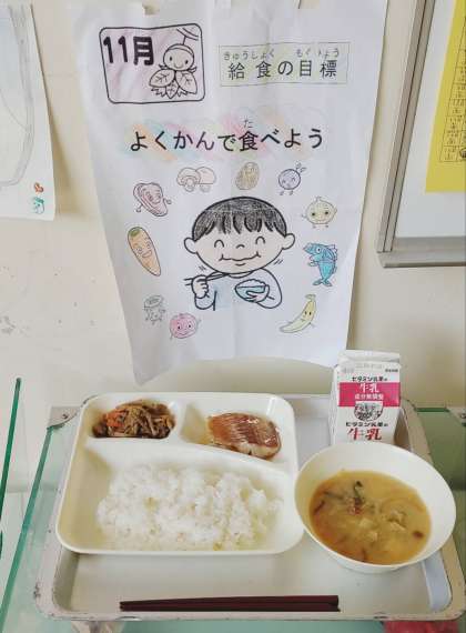 あかうおのしょうゆだれかけ・なめこのみそ汁・きんぴらごぼう