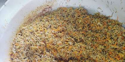 「きんぴらごぼう」は、豚肉、ごぼう、にんじんをいため、砂糖、こいくちしょうゆで味つけしています。