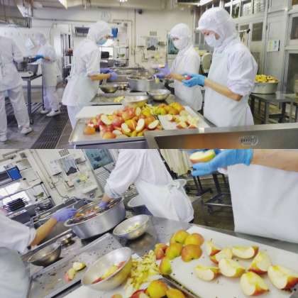 「豚肉のオイスターソース焼き 」は、 豚肉にしょうが汁、にんにく、オイスターソース、こい口しょうゆ、綿実油で下味をつけ、たまねぎを合わせて焼き物機で焼きます。