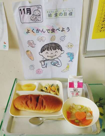 ほうれんそうのグラタン・スープ煮・白桃(缶)