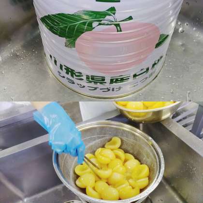 「白桃(缶)」は、1人1切ずつです。山形産の桃を使用しています。
