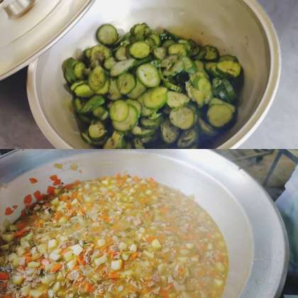 「きゅうりの赤じそあえ 」は、きゅうりを焼き物機で蒸し、赤じそ、砂糖、米酢、うすくちしょうゆを合わせたタレをかけあえています。