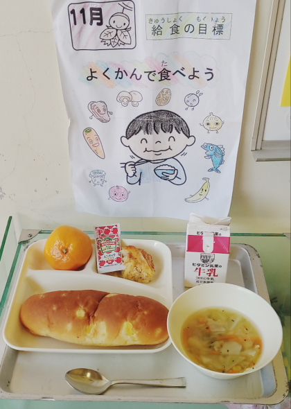 ツナポテトオムレツ・鶏肉とキャベツのスープ・みかん