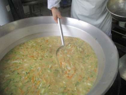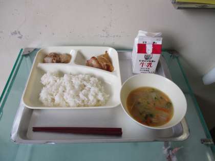 「みそ汁」は、うすあげ、はくさい、にんじんを使用し、青みに青ねぎを使用しています。